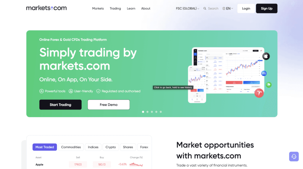Markets.com adalah forex broker terbaik Indonesia yang yang menawarkan spread rendah, dimulai dari 0 pips, dan memberikan leverage hingga 1:500.