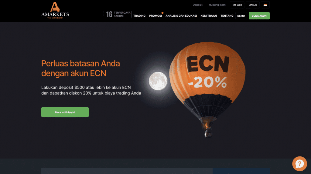 | AMarkets | $10 | 0.2 pips | 1:3000 | MT4, MT5, Webtrader, dan AMarkets App | MISA, FSC CA, SVG FSA | Buat Akun |