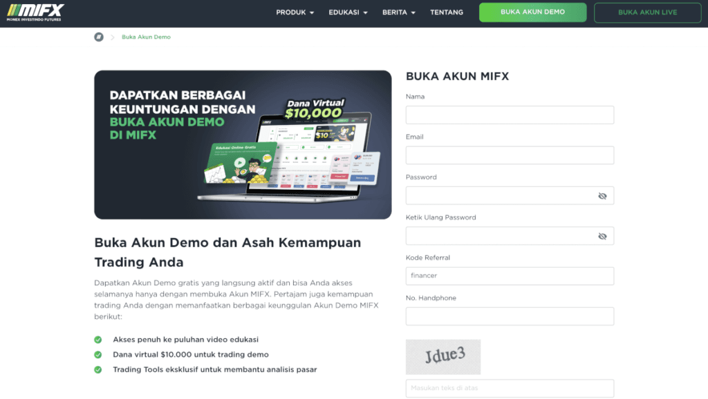 | MIFX | Rp400,000 | 0.2 pips | 1:100 | Aplikasi MIFX, MT4, dan MT5 | BAPPEBTI | Buat Akun |