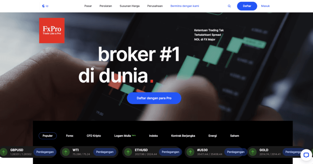 | FxPro | $50 | 0 pips | 1:300 | FxPro Edge, MT4, MT5, dan cTrader. | CySEC, FSCA, FCA, dan SCB | Buat Akun |