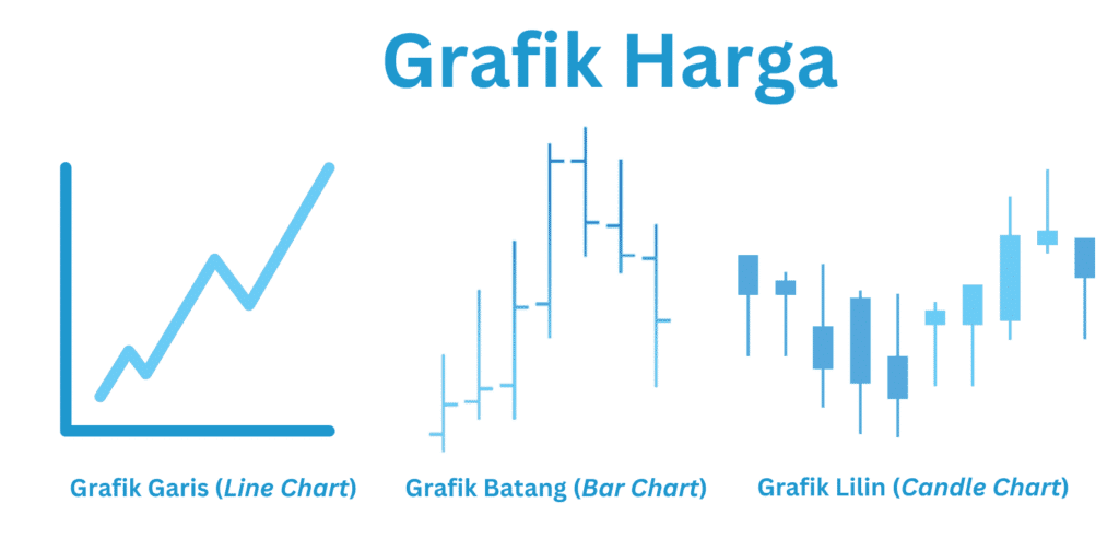 Candlestick: Menampilkan informasi harga tertinggi, terendah, pembukaan, dan penutupan dalam satu periode waktu.