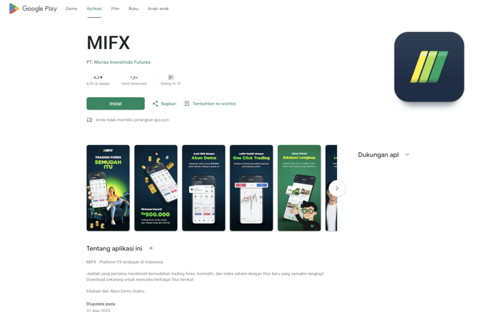 | MIFX | Rp400,000 | 0.2 pips | 1:100 | Aplikasi MIFX, MT4, dan MT5 | BAPPEBTI | Buat Akun |