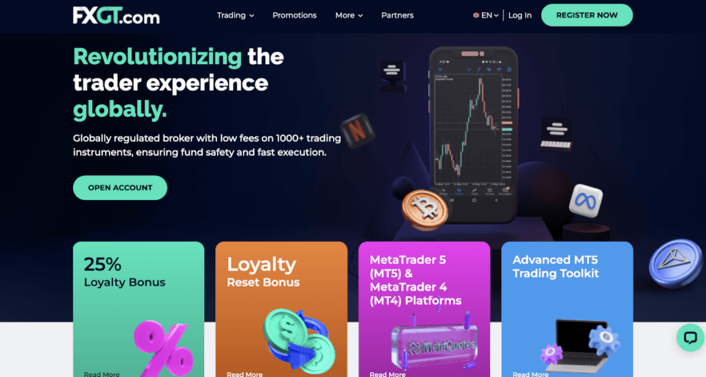 FXGT.com adalah broker forex spread rendah dengan spread mulai dari 0 pips. Dengan minimal deposit $5 saja, pengguna dapat trading online lewat aplikasi mobile, webtrader, MetaTrader 4, atau MetaTrader 5.