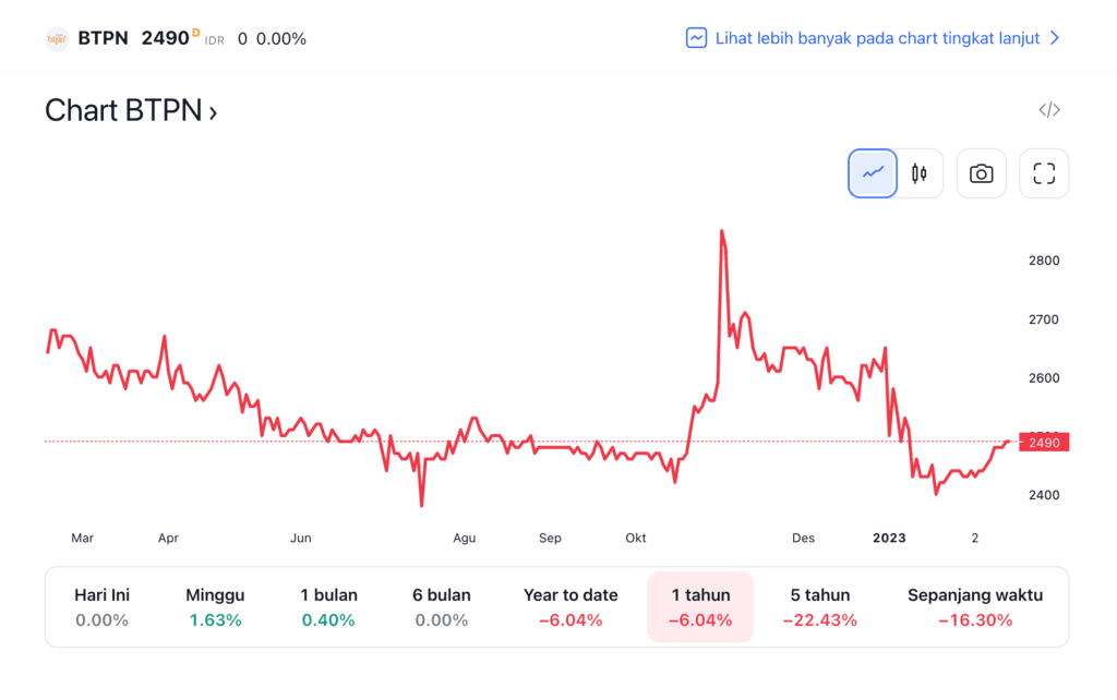 Berikut contoh grafik saham BTPN dalam waktu satu tahun terakhir.