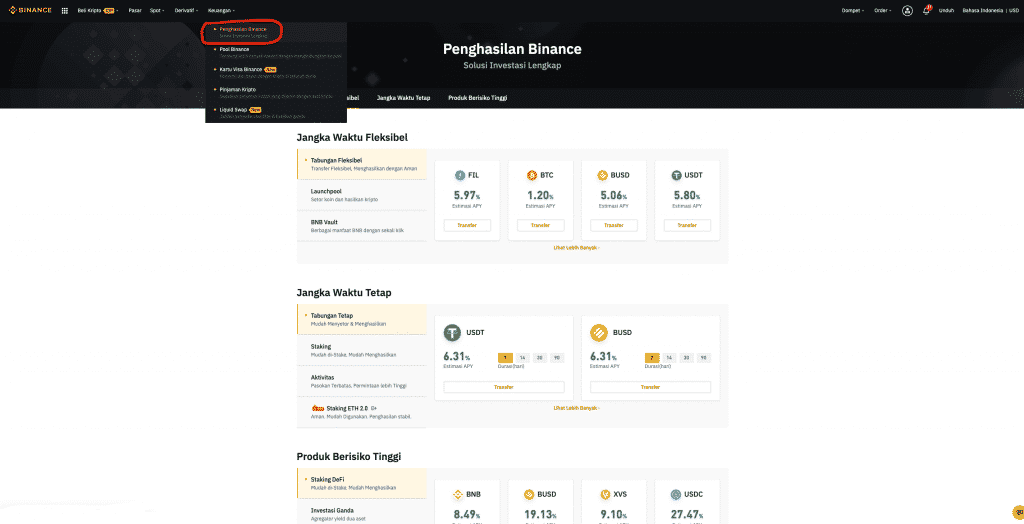 Penghasilan Binance (Binance Savings)