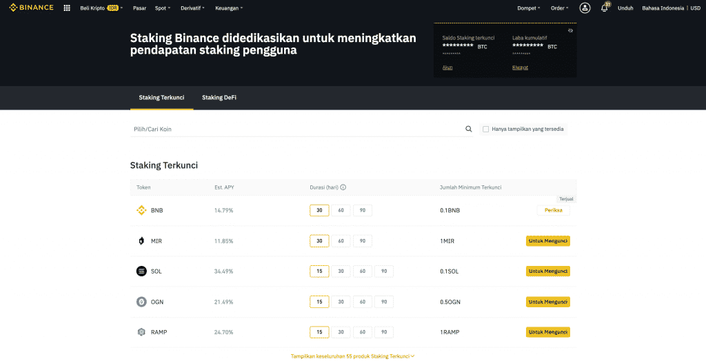 Penghasilan Binance ini memiliki pilihan menabung jangka pendek (fleksibel) atau jangka panjang (terkunci).
