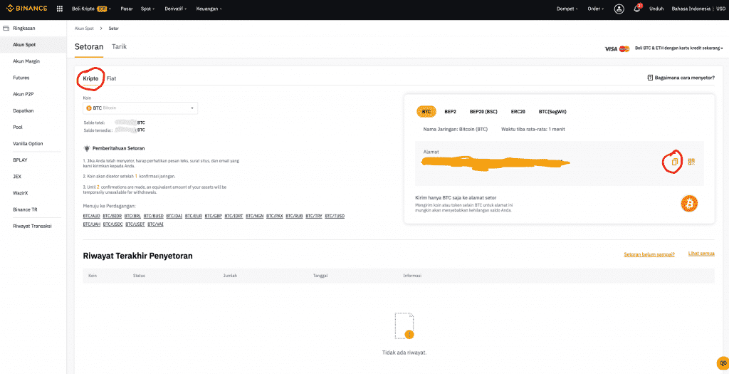 Gunakan alamat ini untuk mengirim Bitcoin atau mata uang kripto lainnya. Misalnya, Anda punya Bitcoin di Tokocrypto? Masuk ke platform dan cari judul “catatan”, masukkan alamat di atas dan tekan kirim, Anda berhasil mentransfer Bitcoin ke dompet Binance.