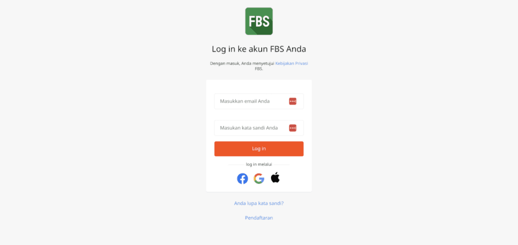 Jika Anda telah menghubungkan akun FBS dengan salah satu akun media sosial tersebut, Anda dapat memilih pilihan login yang sesuai.