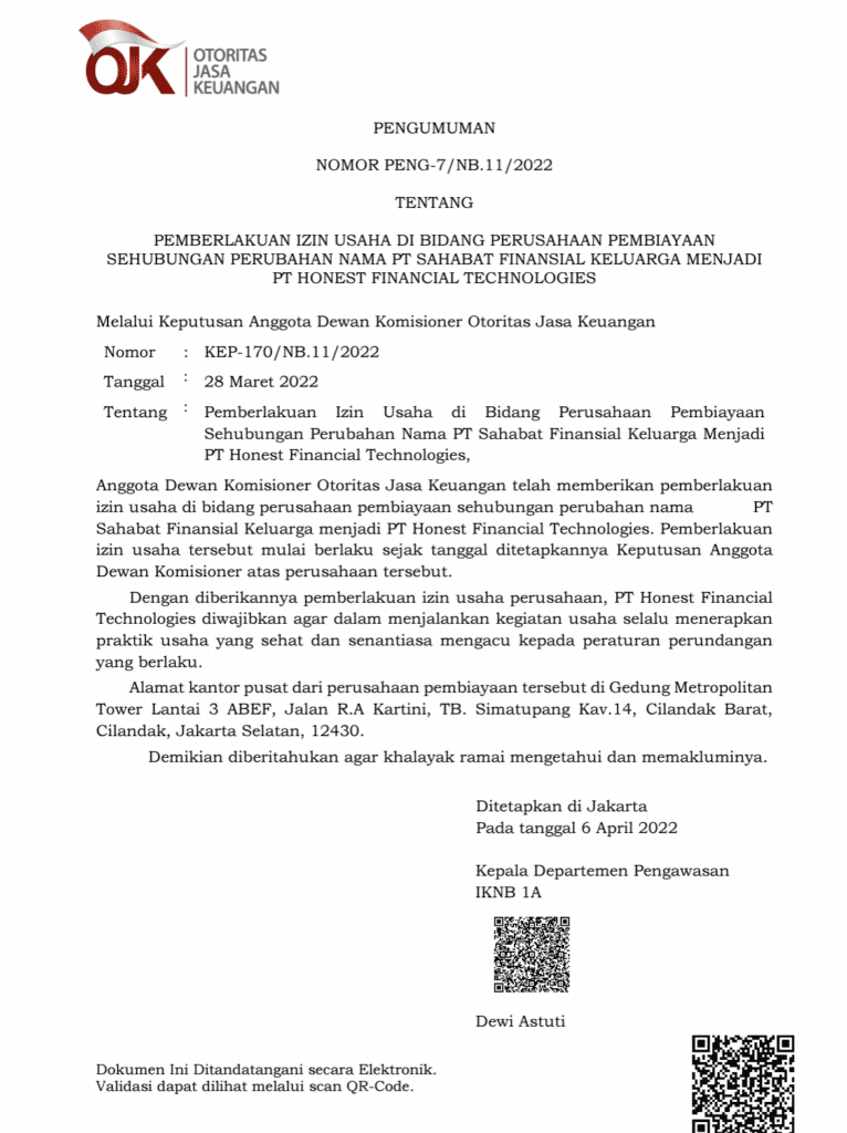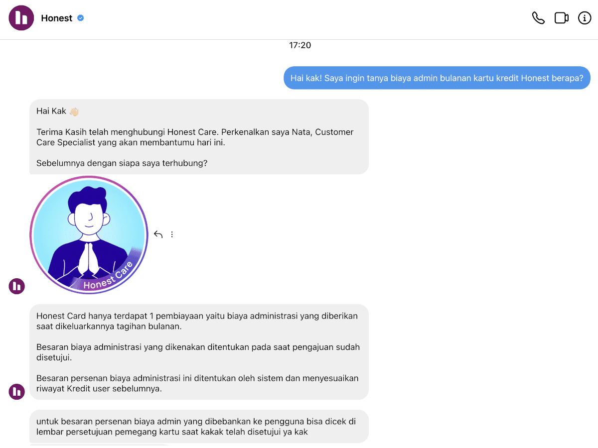 Layanan CS Honest bisa dihubungi via telepon, WhatsApp & Instagram. Respon cukup baik, tapi tidak selalu aktif di luar jam kerja.