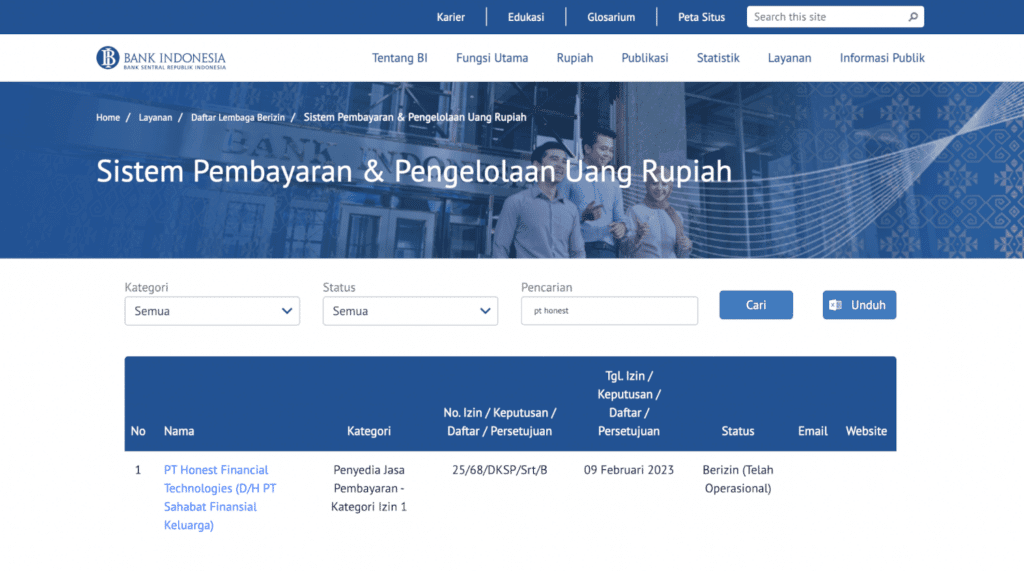 Berikut legalitas Honest dari Bank Indonesia yang dilansir dari website Bank Indonesia: