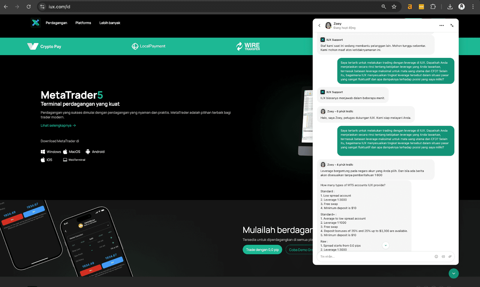 IUX menyediakan berbagai platform trading yang dirancang untuk memenuhi kebutuhan semua trader, baik yang masih pemula maupun yang sudah profesional.