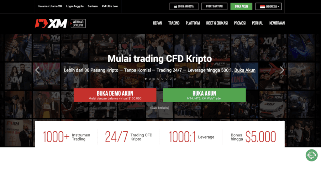 Dengan spread mulai dari 0.8 pips dan leverage hingga 1:1000, XM menawarkan pengalaman trading yang aman, cepat, dan berkualitas.
