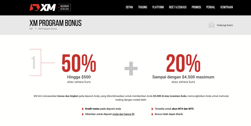 Menawarkan bonus deposit sebesar 50%+20% hingga mencapai $5000! Dapat digunakan untuk trading sepenuhnya.